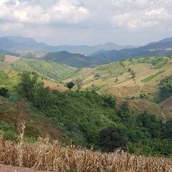 There was little traffic, but a lot of rain on the road as far as Tak. From there a broad, well maintained road takes you up into the hills to the border town of Mae Sot. It's a sinewy road, rather steep in places, fairly challenging owing to the heavy lorries who do not stick to the left. But the rain stopped and the clouds cleared and Mae Sot greeted us with a sunny sky.