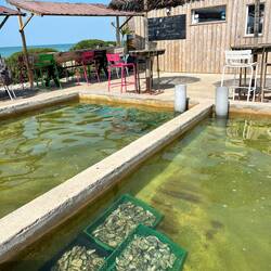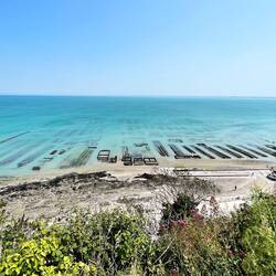 Vom Campingplatz fahren wir mit dem Fahrrad nach Cancale zum großen Austern Anbau mit leckerer Verkostung.