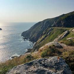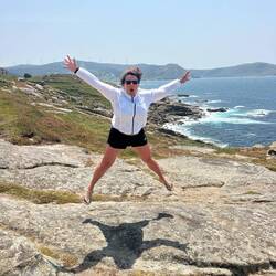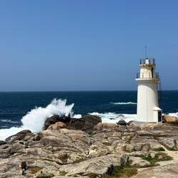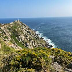 Wir fahren 105 km zum westlichsten Punkt Spaniens nach Fisterra und übernachten am Cap Fisterre. Dort am Leuchtturm kann man direkt an der Steilküste frei stehen, super schön.