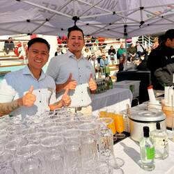 Schon wieder eine besondere Begrüßung beim Einlaufen nach dem Poolbrunch in Kobe bei schönstem Sonnenschein!