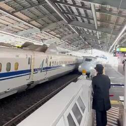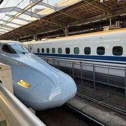 Das Abenteuer beginnt um 10 Uhr in Kobe. Wir fahren mit dem Taxi zum Shinkansen Bahnhof und rasen pünktlich (!) fast geräuschlos in schönen gemütlichen reservierten Sitzen mit fast 300 km/ Std.Læs mere