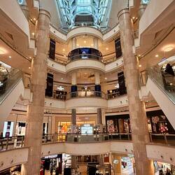 Nebenan befindet sich eine moderne wirklich riesige Mall auf diversen Stockwerken und verschiedenen Gebäuden. Die zahlreichen exotischen Foodstationen faszinieren uns im Untergeschoss! Wir entscheiden uns für frisch zubereitete Nudelsuppen mit Beilage, panierte Shrimps und Gemüsestäbchen, die wir anhand von Fotos bestellen. Jedesmal ein Abenteuer, besonders wenn man mit Stäbchen die Nudeln essen möchte. 🤪
