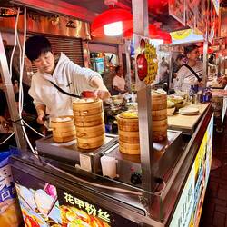 Mit dem Taxi fahren wir zum Nachtmarkt.