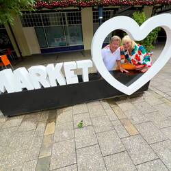 Nach der Passkontrolle fahren alle Gäste mit dem Shuttle durch das Hafengelände zum Ticketterminal. Es wird eine halbstündige Bustour in den Süden nach Heritage zum Strand angeboten. Wir wissen nicht, was uns erwartet, aber es war die beste Idee des Tages!! 👍 Ein Streetfoodfestival mit diversen lokalen Köstlichkeiten wird präsentiert. Lande Warteschlangen vor den verschiedensten Anbietern. Musik 🎶 dudelt auf dem Marktplatz.