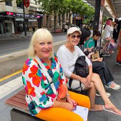 Mit der Straßenbahn fahren wir zum Victoris Square, ein riesengroßer Platz. Hier werden schon Vorbereitungen für das größte Fahrradrennen Australiens getroffen.