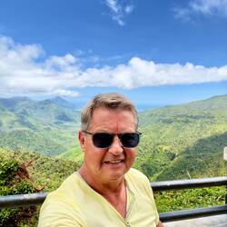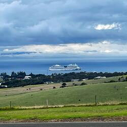 Mit dem Tenderboot fahren wir zur Insel und ein Shuttlebus fährt zu einem Aussichtspunkt. Bei schönem Wetter sicherlich traumhaft! Wir sehen die AIDAsol in der Ferne liegen.