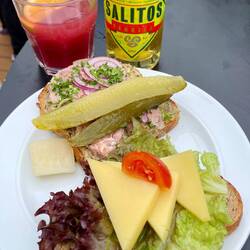 Und weil wir alle fleißig aufgegessen haben, verziehen sich die Wolken und ein sonniger schöner Nachmittag bei 25 Grad begleitet uns.