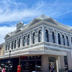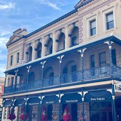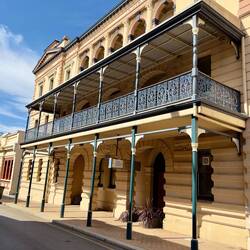Wir bewundern das Parliament House mit seinen korinthischen riesengroßen Säulen aus grauem Marmor, die Adelaide Arcaden von 1885,