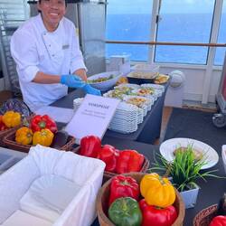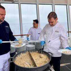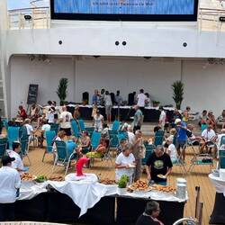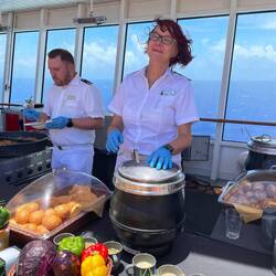 Wie immer am Seetag ist Poolbrunch. Heute zum Thema Pepitos ( Brötchen belegt mit Roastbeef und leckeren Zutaten ) ! Sie schmecken so lecker, da haben wir noch ein zweites belegtes Brötchen 🥯gegessen!