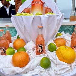 Der Team vom Poolbrunch hat passend zum bewölkten Himmel eine leckere Pilzpfanne vorbereitet. Das Barteam serviert : Pfirsich trifft Grapefruit 🍹