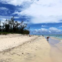 Am langen feinen hellen Sandstrand suchen wir ein schattiges erhöhtes Plätzchen unter einer Palme. Wir haben einen sensationellen Blick auf das klare warme Meerwasser. Bei 28 Grad ist es kaum noch eine Erfrischung.