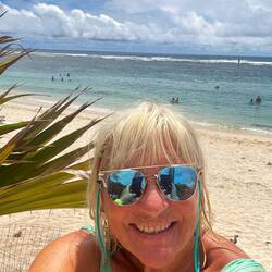 Vom Biergarten aus hören wir relaxte Musik von einer örtlichen Band. Es ist ja Sonntag und viele Einheimische liegen am Strand. Keiner traut sich so richtig weit ins Wasser, obwohl dieser Strand mit dem Korallenriff als HAISICHER 🦈🦈🦈🦈 gilt! 🍀