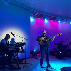 Auf dem Pooldeck bei der TROPICAL NIGHT legt DJ Bastian auf und die Band ( ist neu aufgestiegen in Mauritius )