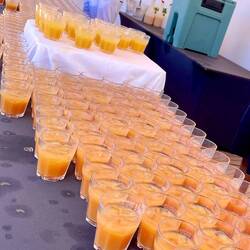 Der Poolbrunch stimmt uns schon kulinarisch ein wenig auf AFRIKA ein. Vegetarisches Kartoffel-Brokkoli-Curry mit Kokosnuss 🥥 Reis und dazu einen Sommer - Punsch! Oh wie lecker 😋!