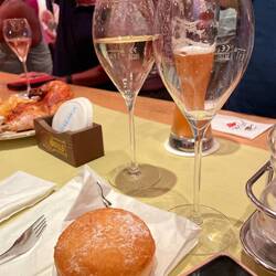 Nach der Hafen Lounge im Theater zum Thema Teneriffa und Madeira verwöhnt uns der Poolbrunch mit Leberkäse in der Semmel und dazu gibt’s Rosé einmal anders !