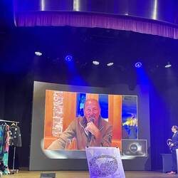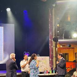 Nach dem Abendessen zum Thema West Afrika startet die PRIME TIME XXL mit Tobi und Reiner Meutsch, dem Stiftungsgründer von Fly & Help. Gemeinsam ziehen sie die Tombolapreise ! Leider gewinnen wir keinen Preis, aber bei der Versteigerung eines einmaligen Bühnenoutfits ( Foto folgt 👀) schlägt Reiner zu! ❤️