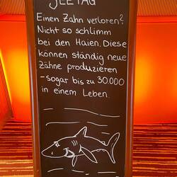 Nach 15 Minuten ist das Schwanken des Schiffes vorbei, denn wir verlassen den Hafen und die Stabilisatoren werden ausgefahren.