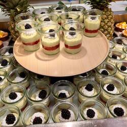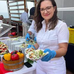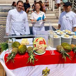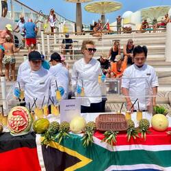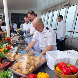 Der Metzgermeister grillt leckeres Fleisch, das Gourmet-Restaurant Rossini bereitet einen fruchtigen erfrischenden Slushie zu, das Pastry Team verwöhnt mit Kuchen und die Cold Galley bietet einen frischen Caesar Salat an.
