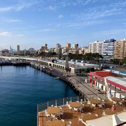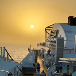 Der Shuttle bringt uns pünktlich zum Schiff und in großer Runde genießen wir zum letzten Mal das Auslaufen auf Deck 12 mit der bekannten Auslaufmelodie. Louise spielt und singt es diesmal live! Zum 1. Mal werde ich traurig 😢 auf dieser Reise…. ! Es ist sehr emotional ❤️