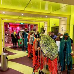 Leider legt die AIDAsol um 18 Uhr schon ab und so sehen und hören wir den Umzug noch an Bord.