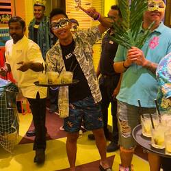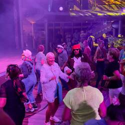 Es herrscht eine ausgelassene Karnevalsstimmung in der Disco und auf der Terrasse! Es ist ein heisser (!) Abend 😋