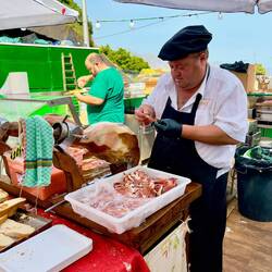 Wir laufen durch diese Hafenstadt zum Fischmarkt. Viele hübsche Fischrestaurants haben sich hier angesiedelt mit Outdoorküchen in denen der Fisch und andere Leckereien gegrillt werden! Schon morgens riecht es sehr lecker hier. Weiter geht’s zur Fußgängerzone (!) mit lokalen Geschäften! Die Verkäuferinnen sind sehr engagiert im Verkauf! 👍