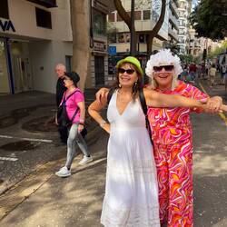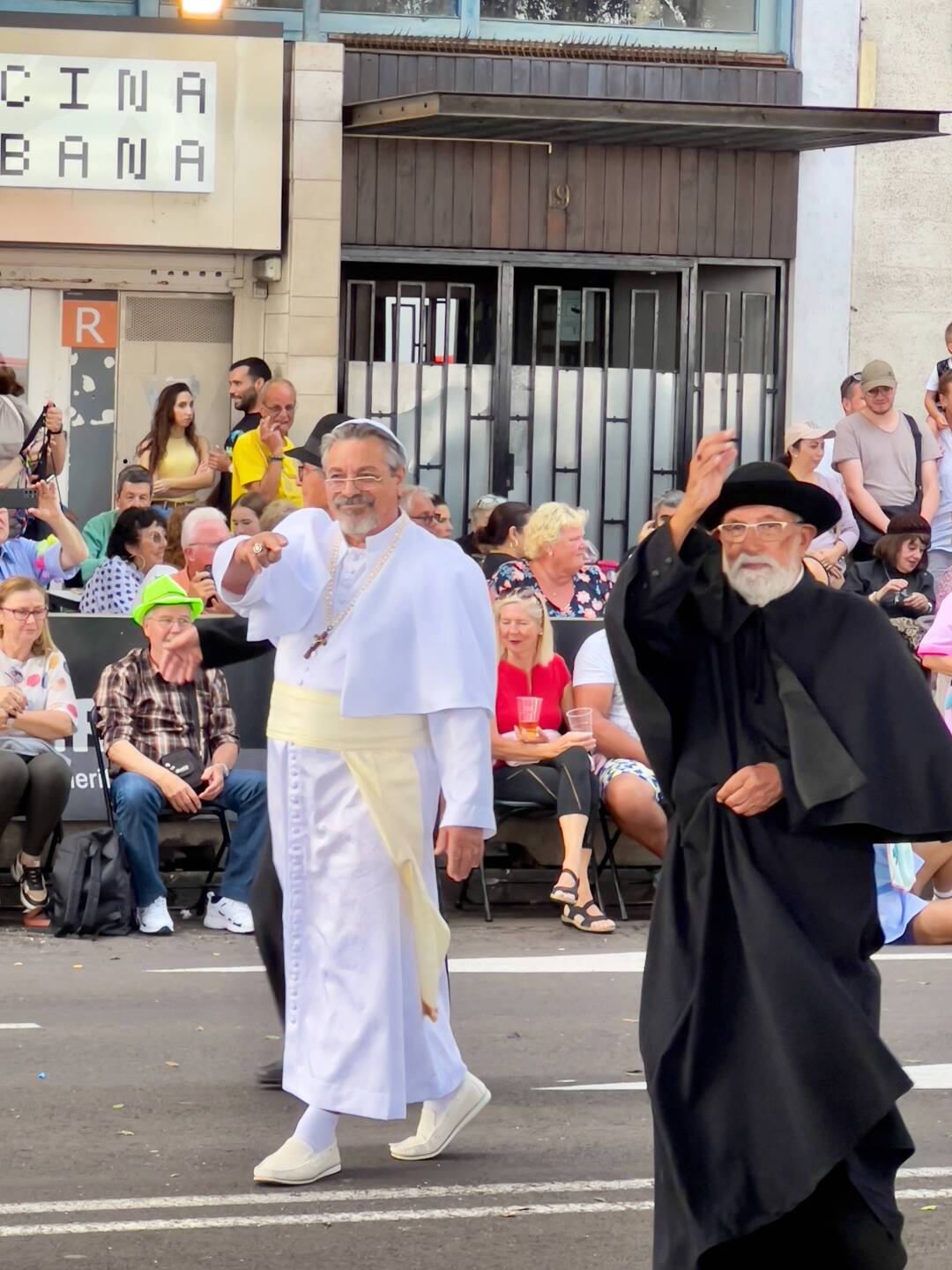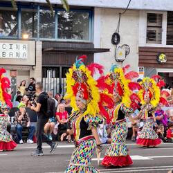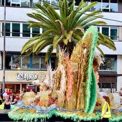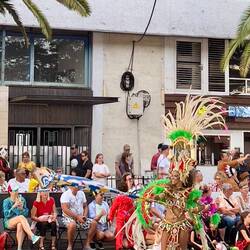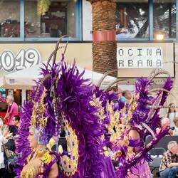Heute ist hier ein Feiertag, denn der EL COSO, die Strassenparade, findet heute an der Uferpromenade statt. Alle Geschäfte haben heute geschlossen und viele Straßen sind gesperrt! Es ist der zweitgrößte Karnevalsumzug, nach Rio de Janeiro, der Welt! Tagsüber werden schon viele Kioske, Bühnen, Verkaufsstände für Karnevalsartikel, Grillstationen und tausende von Stühlen entlang des Umzugs aufgebaut. Immer mehr verkleidete Einheimische und Touristen säumen die Straßen, Überall herrscht ausgelassene Stimmung. Die Strassenlokale füllen sich und bald sind alle Plätze belegt. Jung & Alt, Groß & Klein …. freuen sich auf die Parade! Um 16 Uhr setzt sich der lange bunte Zug mit viel lauter Musik in Bewegung!
