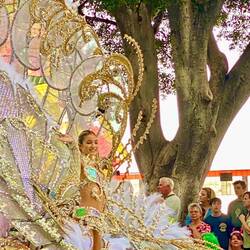 Wunderschöne Kostüme und diverse Karnevalsprinzessinnen bewundern wir, die gut gelaunt an uns vorbeitanzen 🕺🎶🎭💃💃