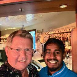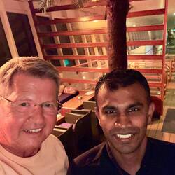 Um 16.30 Uhr verabschieden wir unseren Lieblingskellner Turam. Er fliegt nach 8 Monaten Dienst für 4 Monate zu seiner Familie nach Sri Lanka 🇱🇰 zurück und freut sich sehr, auch über den Umschlag von uns ! 🥰