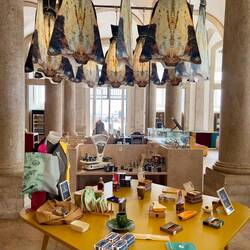 Wir besuchen die letzte Kunstauktion ( ersteigern kein Bild ) und hören dem Interview mit dem Künstler Feliks Büttner ( er hat die Kussmundflotte kreiert) zu !