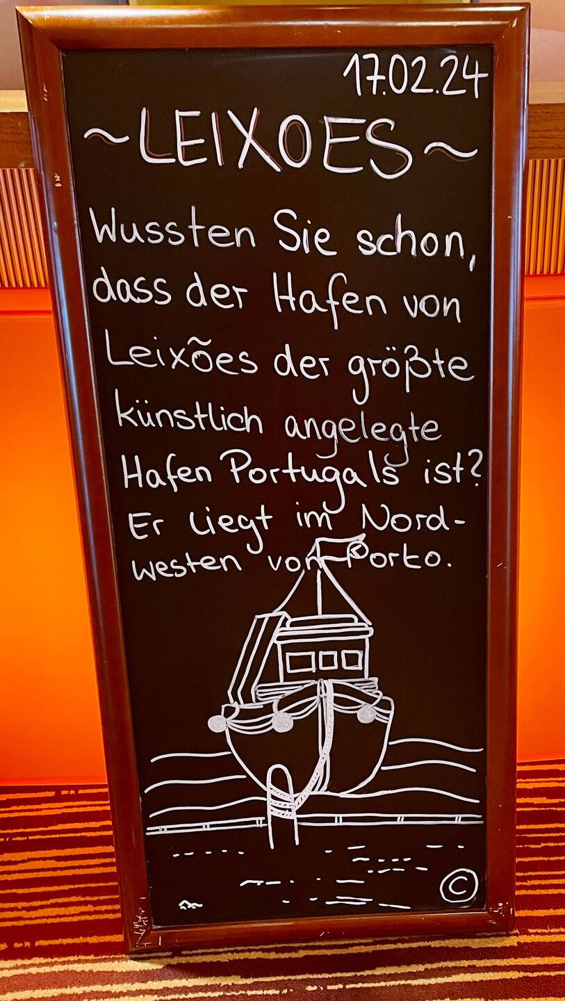 Um 10 Uhr ist die Hafen Lounge zum Thema Lissabon und Porto, unsere nächsten Ziele. Wir sind schon ganz neugierig 👀.