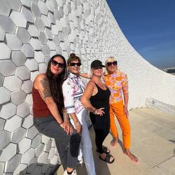Wir verabschieden uns von unserem Lieblingskellner Jonny und treffen uns für ein Gruppenfoto auf der Bühne ! 🥰