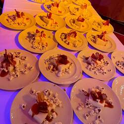 Die Gourmetpaten servieren heute Abend Kalbs-Steakhüfte mit Kartoffel-Rote-Bete-Stampf und glasierten Wurzelgemüse und diverse anderer Leckereien! Der süße Abschluss von der Weltmeisterin: Weißes Mango Mousse trifft Schokolade! 🍫