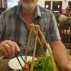 Es war eine Nacht die wir nicht unbedingt wiederholen möchten 🥴. Es regnete durch unser schönes Ziegeldach (zum Glück 30 cm neben unser Bett 🙈🙈🙈) und gegen 3 Uhr flogen unsere Schlafzimmerfester auf, da die Halterungen für diesen Sturm nicht gemacht zu sein schienen. Gegen halb 5 schlief ich wieder ein. Allerdings ließ uns die Aussicht auf einen vietnamesischen Kaffee und ein Omelett unser Domizil gegen 8 Uhr verlassen. Draußen waren schon viele fleißige Hände am Werk, aber nach kurzer Zeit stellten sie ihre Tätigkeiten ein, sicherlich um das Ende des Sturms abzuwarten, was sicherlich noch 1 - 2 Tage dauern wird.