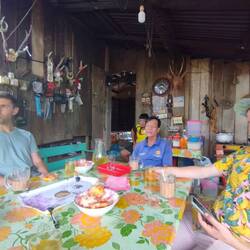 Johnny nas pelje do hiše svojega bratranca, ki je skrita v gozdu, med poljem popra in majhnim ribnikom. Povesta nama, da je pridelava popra precej popularna za Sarawak, izvažajo tako beli kot črniLeggi altro