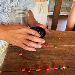 Kot sem rekla, čist drug svet… po treh urah informacij, polovico katerih sem žal že pozabila, smo se vrnili nazaj v hiško in razložil nam je še proces praženja kave. Od Captain Hooka sem odšla s čudnimi mešanimi občutki, hvaležna za tako podroben insight v novo kulturo, malo žalostna, kako živijo… otroci so bili sicer veseli in igrivi, vendar kmalu jih čaka naporno težko življenje… Prilagam še razlago fotk: