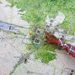 Čakal naju je dolg dan; raziskovanje templjev z začetkom ob 6ih in koncem po sončnem zahodu. Po Ankor Watu naju Kan odpelje do enega zemljevida, da si lažje predstavljava današnjo pot. Malo tudi pove o zgodovini in kakšno zanimivo dejstvo. Prečkamo most in veličastna kamnita vrata v obzidju do dejanske palače, kjer je skoraj tisočletje nazaj živel kralj, in samo on. Notri so ljudje poslovali, imeli dnevne tržnice, se sprehajali itd., živeli pa zunaj obzidja (na zemlejvidu Kan s prstom kaže tja, tempelj Bayon).