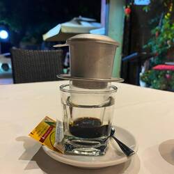 Prvi del poti gre kar hitro, malo berem malo dremam in smo v Phnom Penhu… prispemo sicer s kar eno uro zamude zaradi popoldanskega prometa. Najdem vegi vietnamsko restavracijo in naročim kokosovo kremno juhico s tofujem! Odlično, skor se zjokam ko dobim tist klasičen jasminov čaj in vso zelenje ob hrani, tradicionalno vietnamsko🥲! Pa še sladico zastonj, kokosov puding z banano in tapioko! Imam čas še za kavico in si vzamem en Ca Phè Den, tradicionalno črno vietnamsko kavico in njen aromatičen vonj se prav ovije okoli mene🙌!