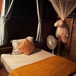 Imam srečo, da ima tale Homestay družabni prostor in kopalnico spodaj, tako da si umijem zobe in se vržem v visečo mrežo😅. Tam zadremuckam do pol štirih, ko se lastnik zbudi in mi pokaže do moje sobice🙌!!