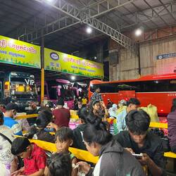 Vprašam ene tri različne delavce, kater avtobus gre do Kratie in nekako iz pantumime razberem, kateri je moj. Ko je čas za odhod se voznik začne dret v megafon in jaz se pridružim koloni pri vratih. Končno na avtobusu, imam svojo posteljo ker je to tehnično sleeper bus. Odhod je okoli desetih, skoraj dve uri zamude🫠sporočim hostlu v Kratie, da bom prihajala sredi noči, imamo namreč 4 ure do tja pravi Google Maps…