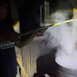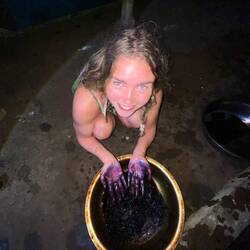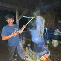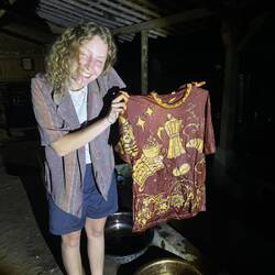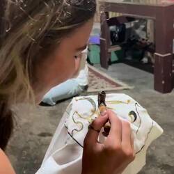 Hardi nas je peljal do nove lokacije, hiše prikupnega para Yuni in Tommi, ki se že već kot 15 let ukvarjata s poslikavo materjala z uporabo tradicionalne tehnike;Læs mere