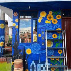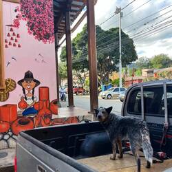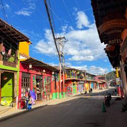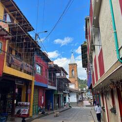 Prispemo zgodaj, okoli 8.30 in takrat Kolumbija še ni zbujena 😝. Šetkam skozi prazno vasico v iskanju odprtega kafiča in po slabe pol ure ga najdem.