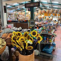 Ob kavici opazujem, kako se mesto počasi prebuja. Trgovine se odprejo, prodajalci postavljajo pred svoja vrata artikle in nekatere obešajo na zunanje haklje🤗.