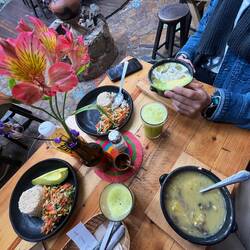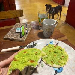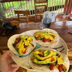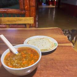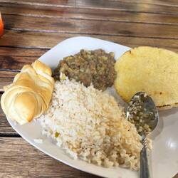Najprej dol po hribčku, mimo prijazne sosede, ki ima malo restavracijo, kjer pojeva res odličen zajtrk, arepo s Hogaom,Leer más