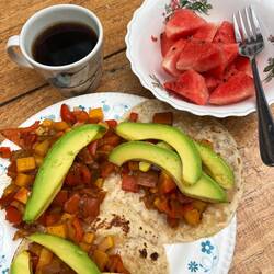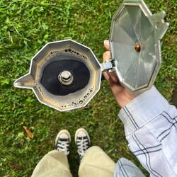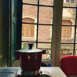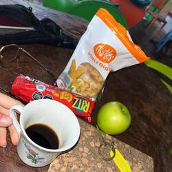 Jutranji kofe na verandici potem pa se dobro zadekava za na pot, naju čaka mrzla vožnja😅.