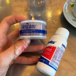 Na zadnji dan sem se uspela uspešno porezat pri obrezovanju polja okrog plantaže kave in vsi vemo, kako radi naš prstki pretiravajoLeer más