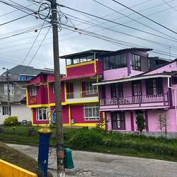 Stare visoke hiške, lepo pobarvane in okrašene z rož’cami, Kolumbijci res znajo polepšatLeer más