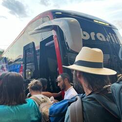 Na avtobusu s samimi lokalci, voznimo se dobre tri četrt ure proti zahodu.
