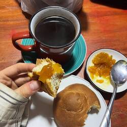 Skuham si kavo, ki jo nujno rabim po dolgi vožnji in neprespani poti🥱.