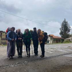 Group Foto😛 in šartamo. Spustimo se malo v dolino, med razpršenimi hišicami, potem pa spet maloLes mer